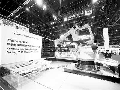 ▲第十三届储能国际峰会暨展览会(ESIE2025)上展出的集装箱储能电池PACK入簇工作站。