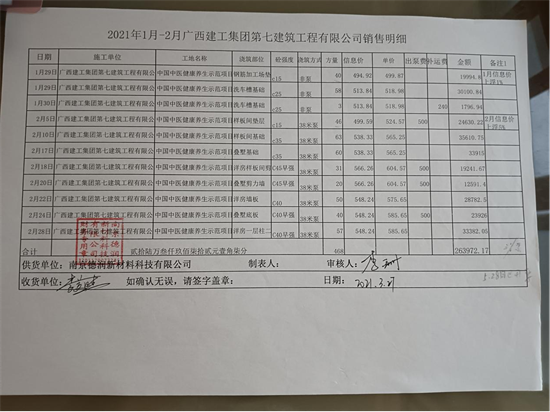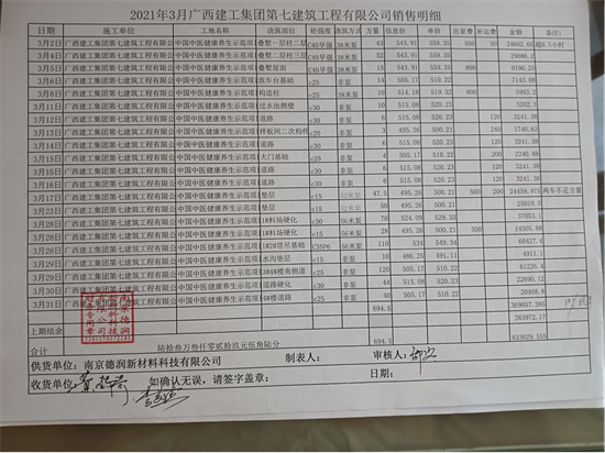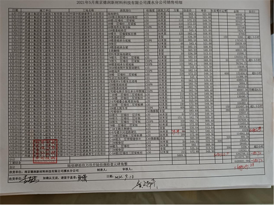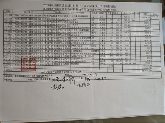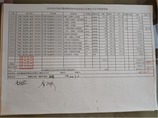 2021年1-6月南京德润新材料科技有限公司溧水分公司销售明细: